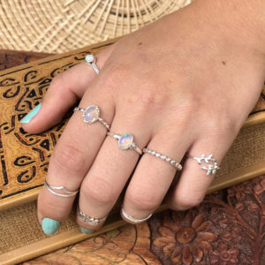 This a new design to Studio Jewellery although is based on a centuries old pattern. With a beautiful fancy head, shimmering colours from the beaufiful natural opal gemstone and intricate beaded fine band – we expect it to be one of our best sellers in the coming year.