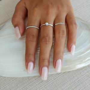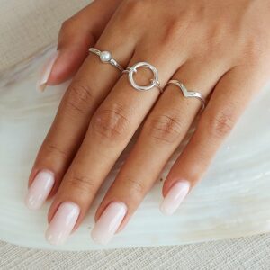 Our Hammered Mother of Pearl Ring features a delicately hammered silver band with a striking mother of pearl set in the. This piece is super versatile as it can be stacked and layered with other rings or shine solo on its own. Made from solid 925 sterling silver this ring will be a staple in your jewellery collection for years to come.