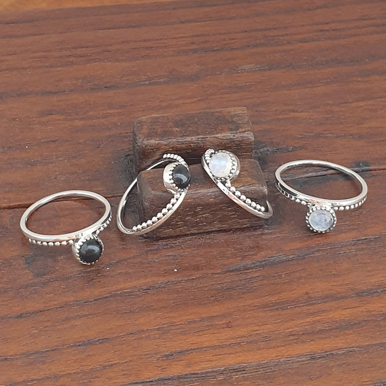 This is a beautiful 5mm polished circle piece of rainbow monstone on a band with beads that extend half way around. The same item is also available in black onyx.