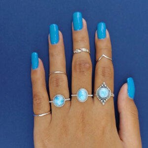 This stunning Oval larimar stone is set in solid 925 sterling silver with a boho look and theme.