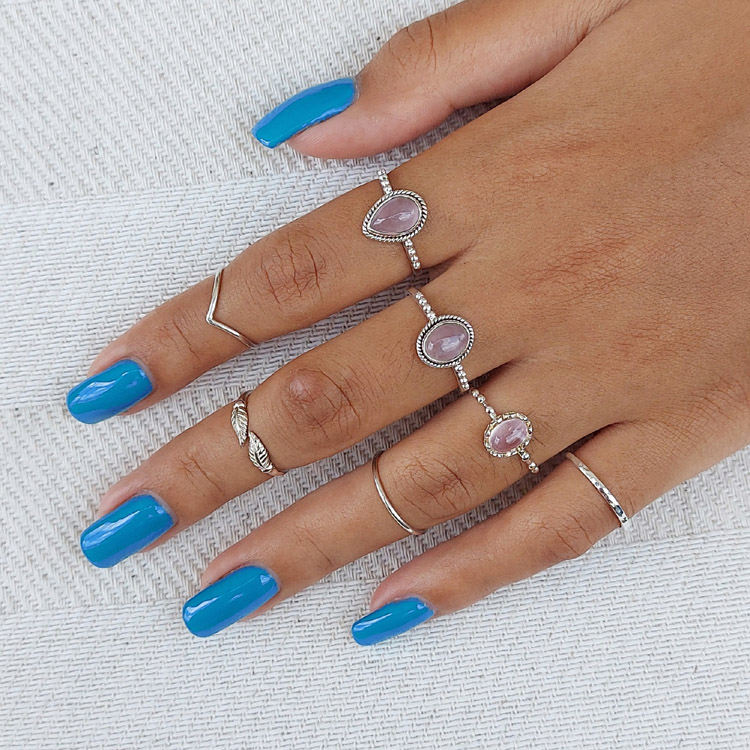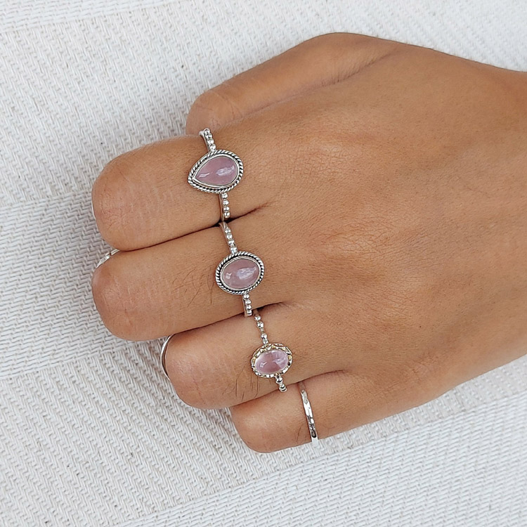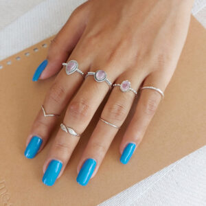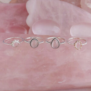 This small oval rose quartz gemstone is solid 925 sterling silver and is also available in rainbow moonstone.