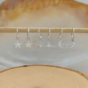 The small 12mm 925 sterling silver hoop earrings have 2 similarly sized star charms that dangle from them.