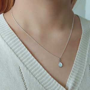 Shine bright with our Water Drop White Shell Silver Necklace. This stunning piece features a delicate water drop shape pendant with a mesmerizing white shell inset. Elevate your style effortlessly with this elegant piece that will surely turn heads wherever you go!