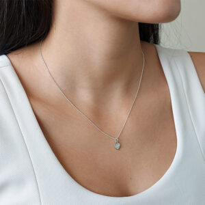 Capture the essence of coastal beauty with our White Heart Shell Silver Necklace. Made from 925 Sterling silver, this necklace boasts a 45cm standard chain adorned with a medium-sized heart-shaped pendant, featuring a mesmerizing white shell inset. Elevate your style with a touch of seaside elegance.