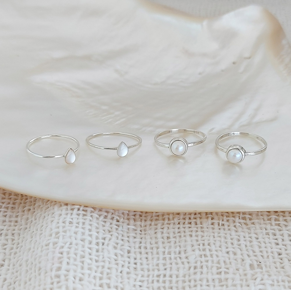 This shimmery white shell is beautiful polished and set into a pear shaped head. It is made of 925 sterling silver and natural white shell. It is one of many similar items we have at studio jewellery made from these beautiful shells.